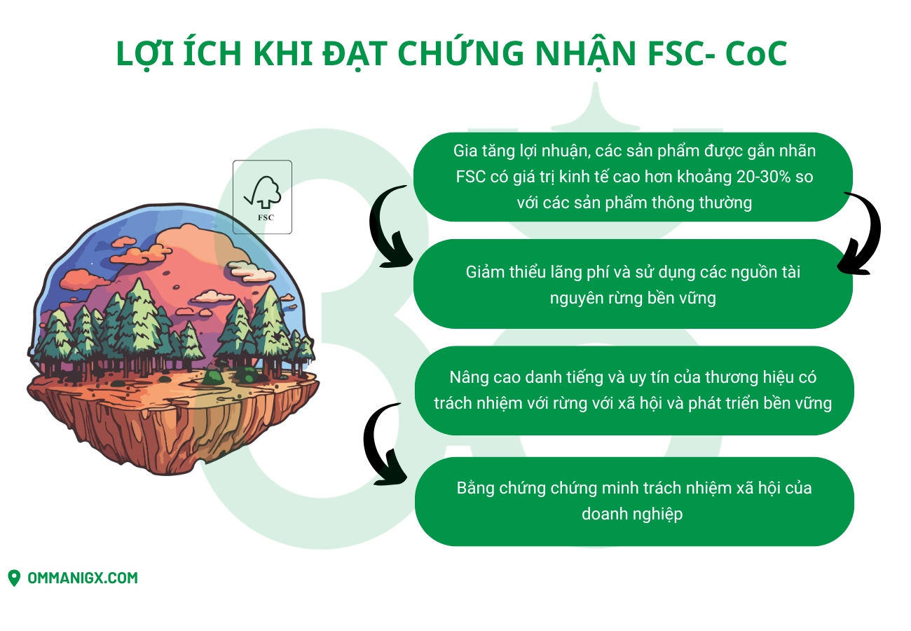 Tiêu chuẩn FSC-CoC là viết tắt của cụm từ ''FSC-Chain of Custody'' dành cho những tổ chức/doanh nghiệp muốn chứng minh các sản phẩm gỗ của mình có nguồn gốc được sản xuất theo các tiêu chuẩn nghiêm ngặt và đáng tin cậy trong suốt quá trình sản phẩm từ rừng, hoặc trong trường hợp vật liệu tái chế, đi qua từ thời điểm vật liệu được khai thác, đến thời điểm sản phẩm được bán và/hoặc sản phẩm được dán nhãn FSC - CoC bao gồm từng giai đoạn tìm nguồn cung ứng, chế biến, giao dịch và phân phối.