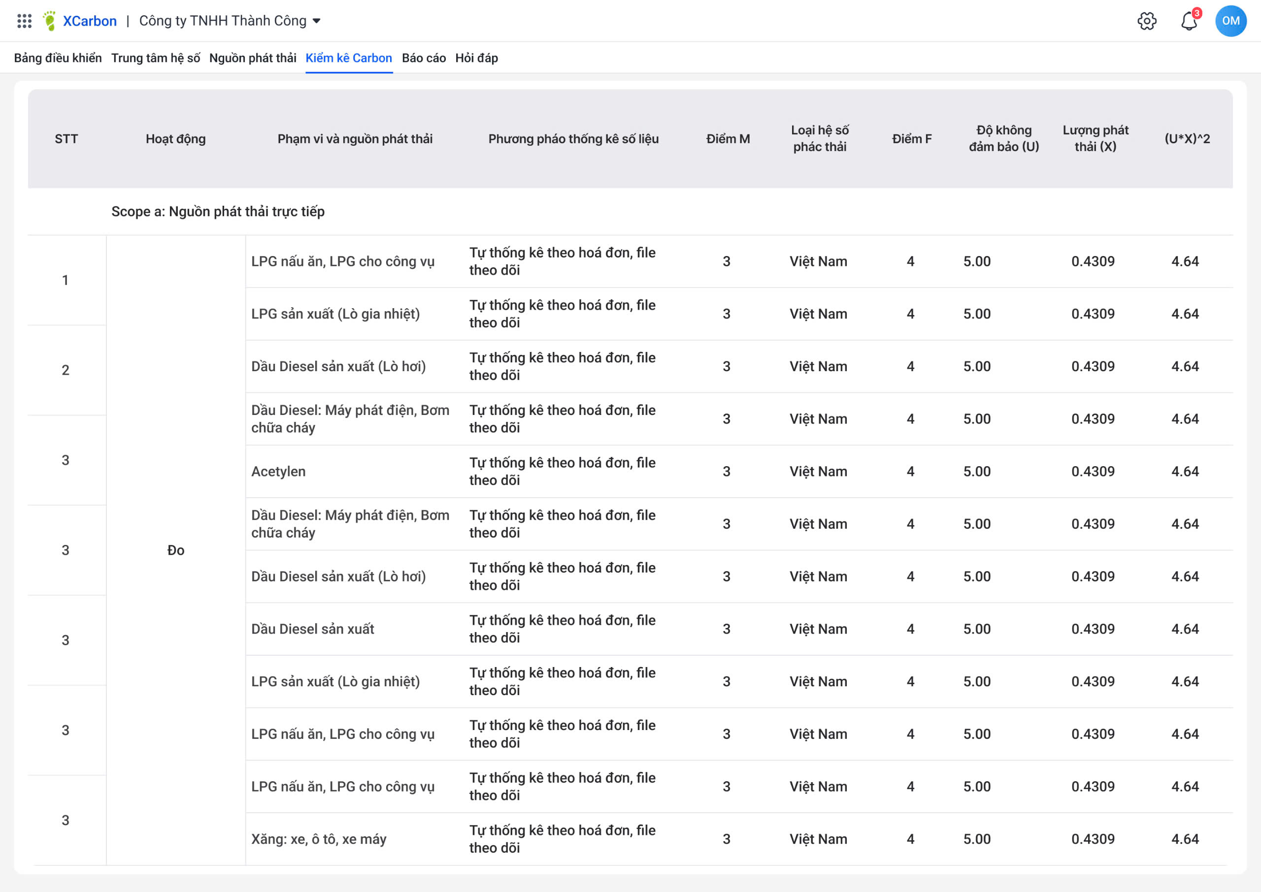 Doanh nghiệp cập nhật hàng ngày/tuần/tháng theo các nguồn phát thải thực tế và các minh chứng kèm theo để hệ thống tự động tập hợp dữ liệu tính toán.