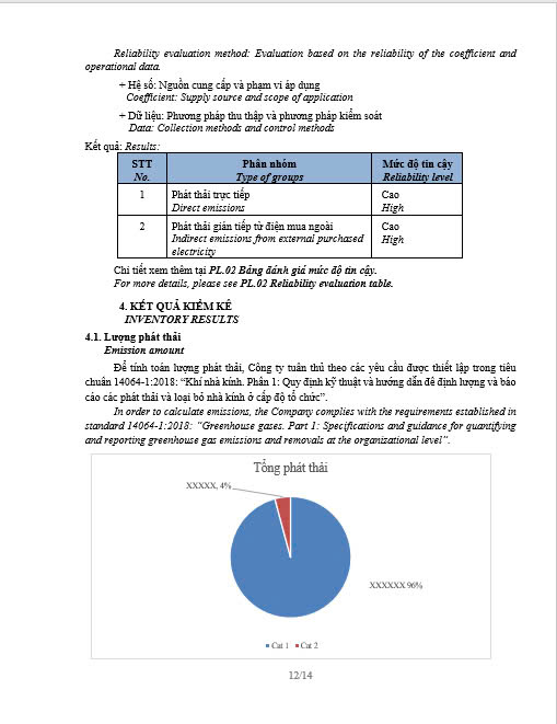 Một số hình ảnh kết quả báo cáo kiểm kê khí nhà kính được thực hiện bởi chuyên gia OMMANI GX: