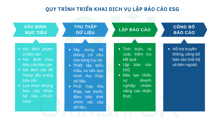 Ommani GX sẵn sàng đồng hành cùng doanh nghiệp trong toàn bộ quá trình triển khai ESG, từ xây dựng kế hoạch, thu thập và chuẩn hóa dữ liệu, hoàn thiện báo cáo đến tư vấn công bố ra bên ngoài. Mục tiêu của chúng tôi là giúp doanh nghiệp công bố ESG minh bạch, nhất quán và có giá trị sử dụng thực tế, qua đó gia tăng uy tín thương hiệu và mức độ tin cậy với nhà đầu tư và đối tác.