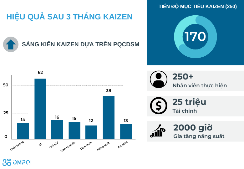 Dự án OMPQI thực hiện cho khách hàng bằng cách áp dụng Kaizen để hợp lý hóa sản xuất, giảm thiểu việc làm lại và tối ưu hóa việc sử dụng không gian.